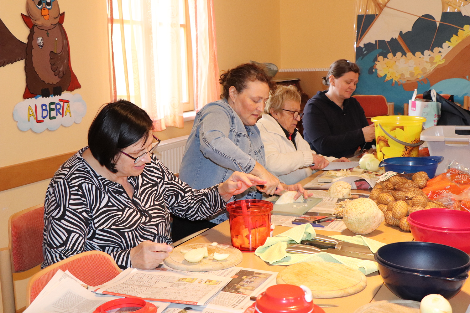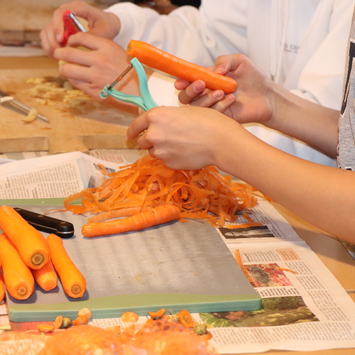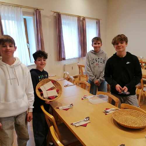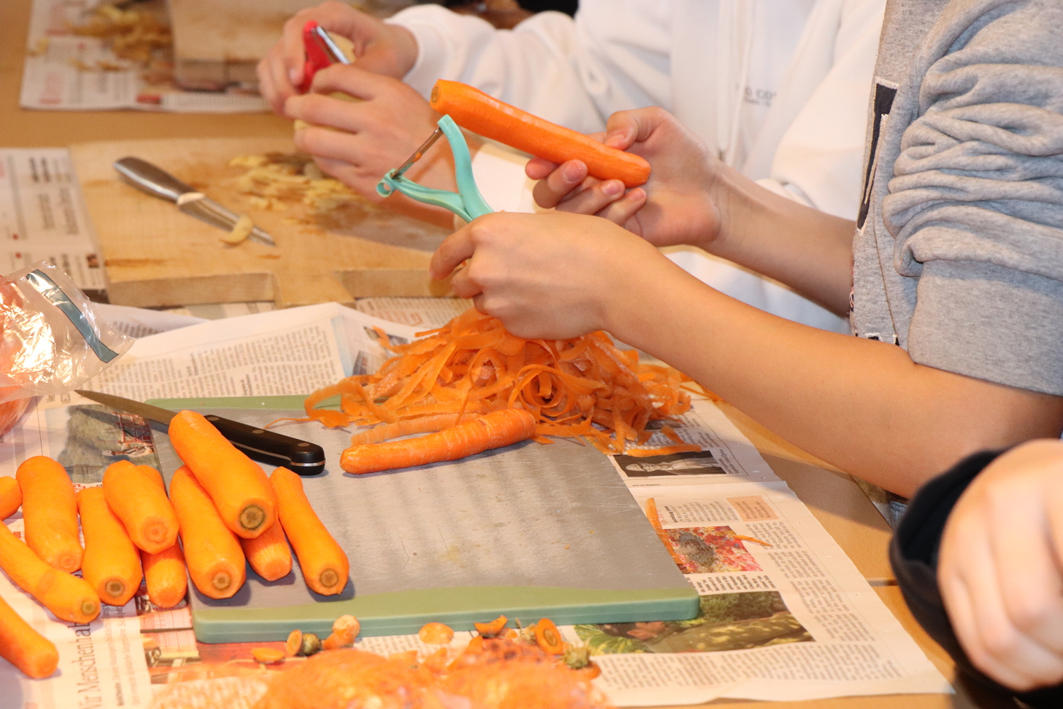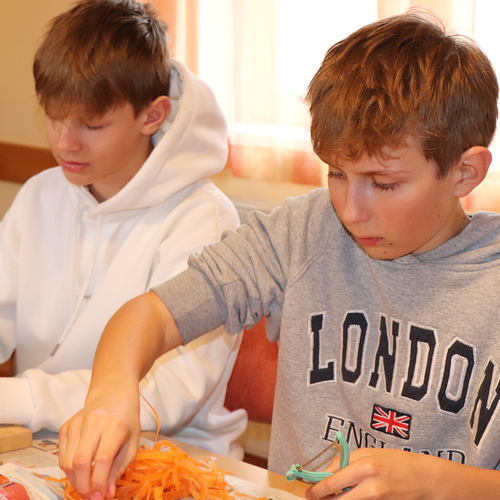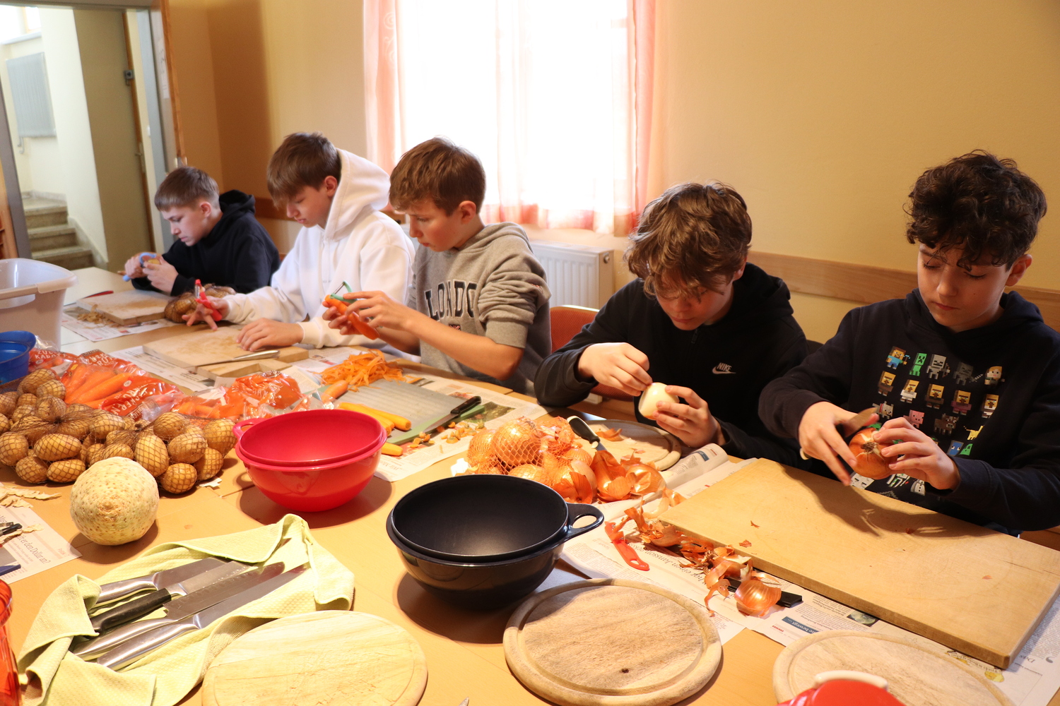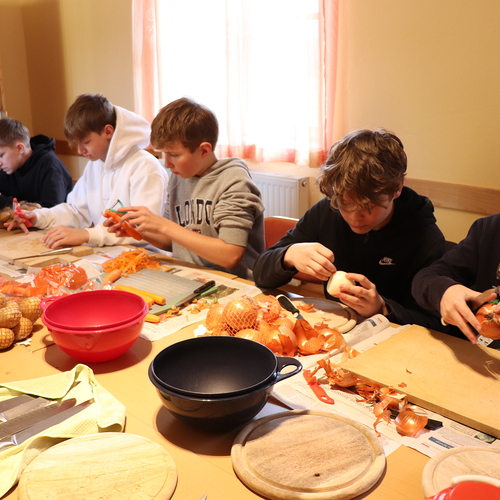 Firmlinge und Helferinnen kochen Fastensuppen